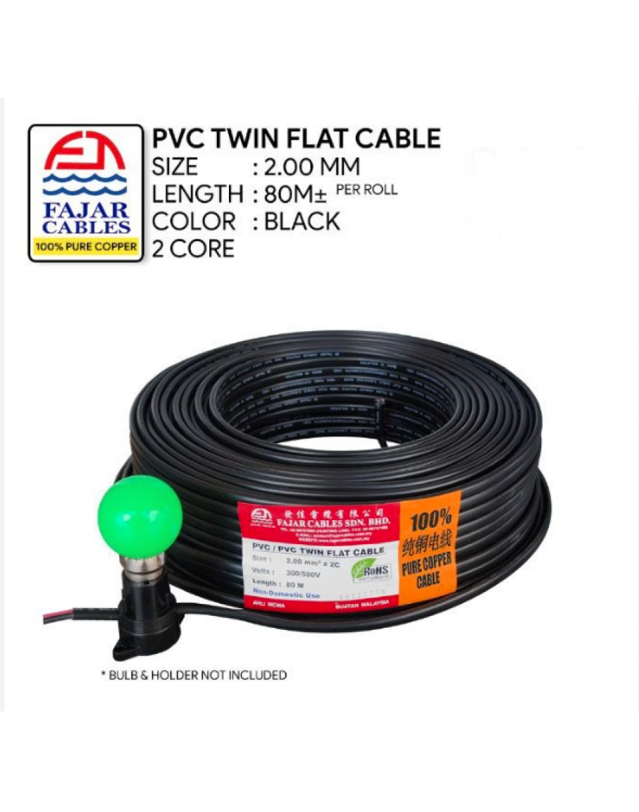 2.0MM X 2C X 80M PVC/PVC TWIN FLAT CABLE (BLACK) [FAJAR]